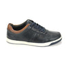 Renzo is a premium sneaker crafted from high-quality leather, available in rich navy tone. Set on a durable rubber sole, it offers both style and comfort. Key features include refined stitch detailing and a sleek, modern silhouette—perfect for elevating your casual wardrobe.